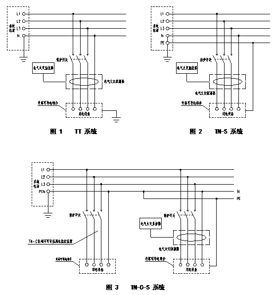 3.4.3TN-C接地系統不可裝設漏電監控節點,如需裝設時必須將系統接地保護方式改造成TN-C-S系統或局部TT系統。